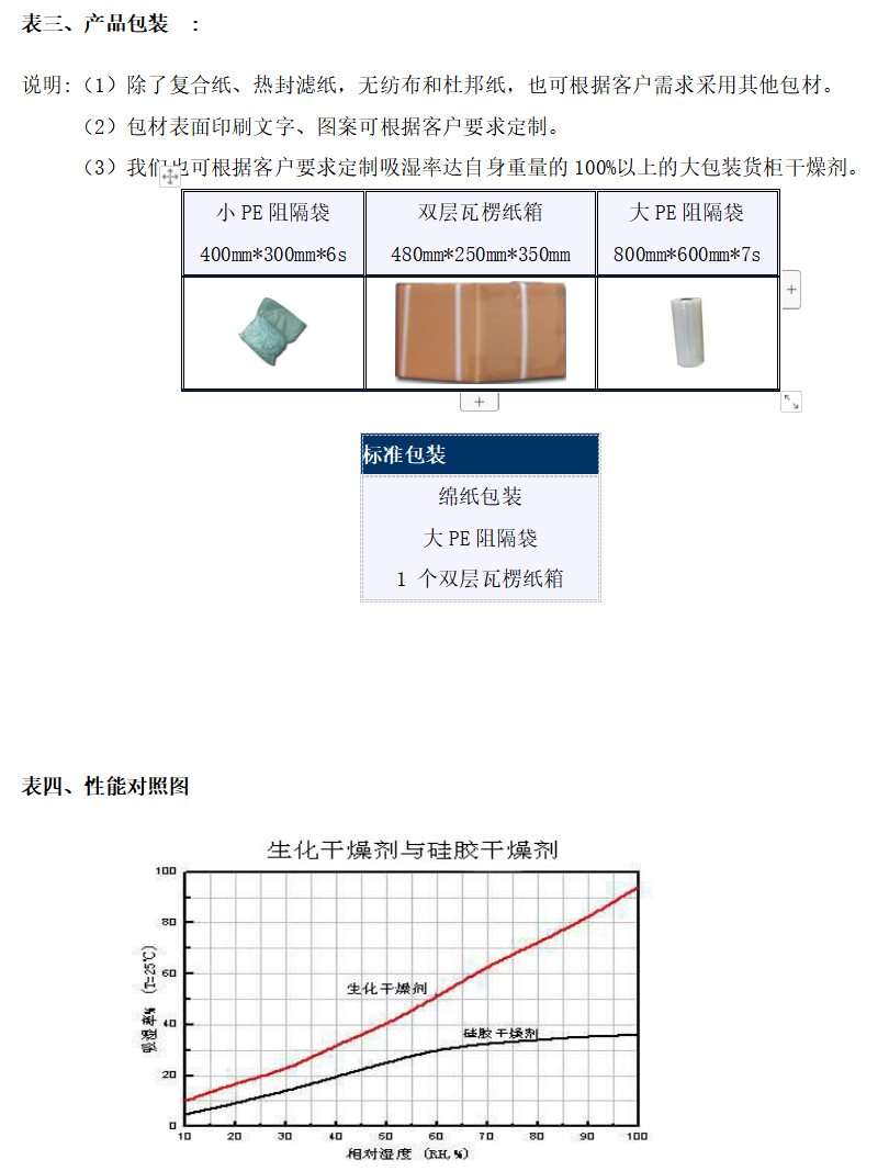 我們公司多生產(chǎn)的防霉干燥包產(chǎn)品質量環(huán)保干燥劑通過SIMT國家測試中心及SGS的認證,產(chǎn)品質量達到美國標準MIL-D-3464E及德國標準DIN-55473.相關技術表如下: